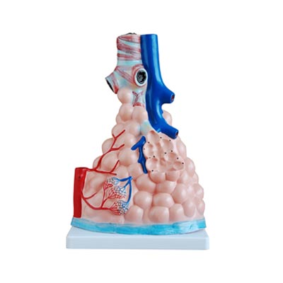 The model shows the small branches of principal bronchus: Section of bronchi-ole of no cartilage. The relation between pulmonary alveoli and terminal bronchi-ole. The structure of alveolar sac and alveolar duct. The