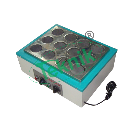 Double walled construction. Inner chamber of stainless steel sheet and outer of mild steel sheet duly finished in powder coated. The gap is filled with glass wool for temp. Insulation. Temperature range 40°C above ambient to 100°C controlled by a thermostat. Complete with concentric rings, pilot lamp, plug cord etc. It works on 220V AC 50Hz single phase.