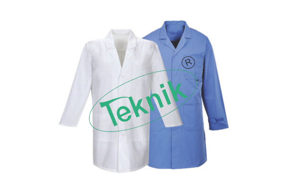 98% Texturized Polyester/2% Carbon Suffused Nylon, Notched lapel, Left chest pocket and two lower pockets, 41 ½”” length, Six gripper snap closure, Adjustable gripper sleeves with grounding snap at cuff.